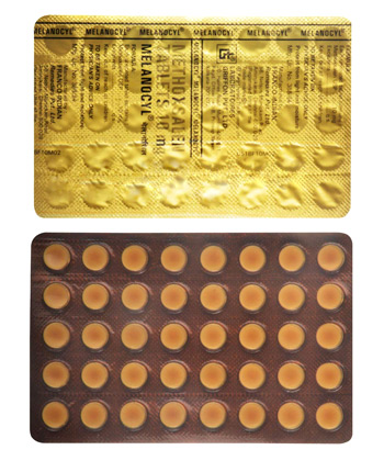 - Doza obișnuită de meladinine este de 0,4–0,6 mg/kg pentru vitiligo și 0,6 mg/kg pentru psoriazis.